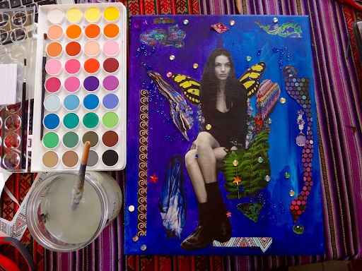 I wrote articles for my highschool yearbook, studied Anthropology and Creative Writing at the University of Arizona, was a docent at the Arizona State Museum, taught environmental education in the northwoods of Minnesota, and high school English in Maryland before moving to South America in 1993. I spent the next 22 years teaching environmental education and creative writing in the forest highlands of central Argentina and raising my sons in a small town in the hills of Cordoba. Collage art became my medium in 2005 when a few things happened simultaneously: an art class with a collage artist, my cancer diagnosis, our school’s land–a natural preserve–burning in a wildfire.
